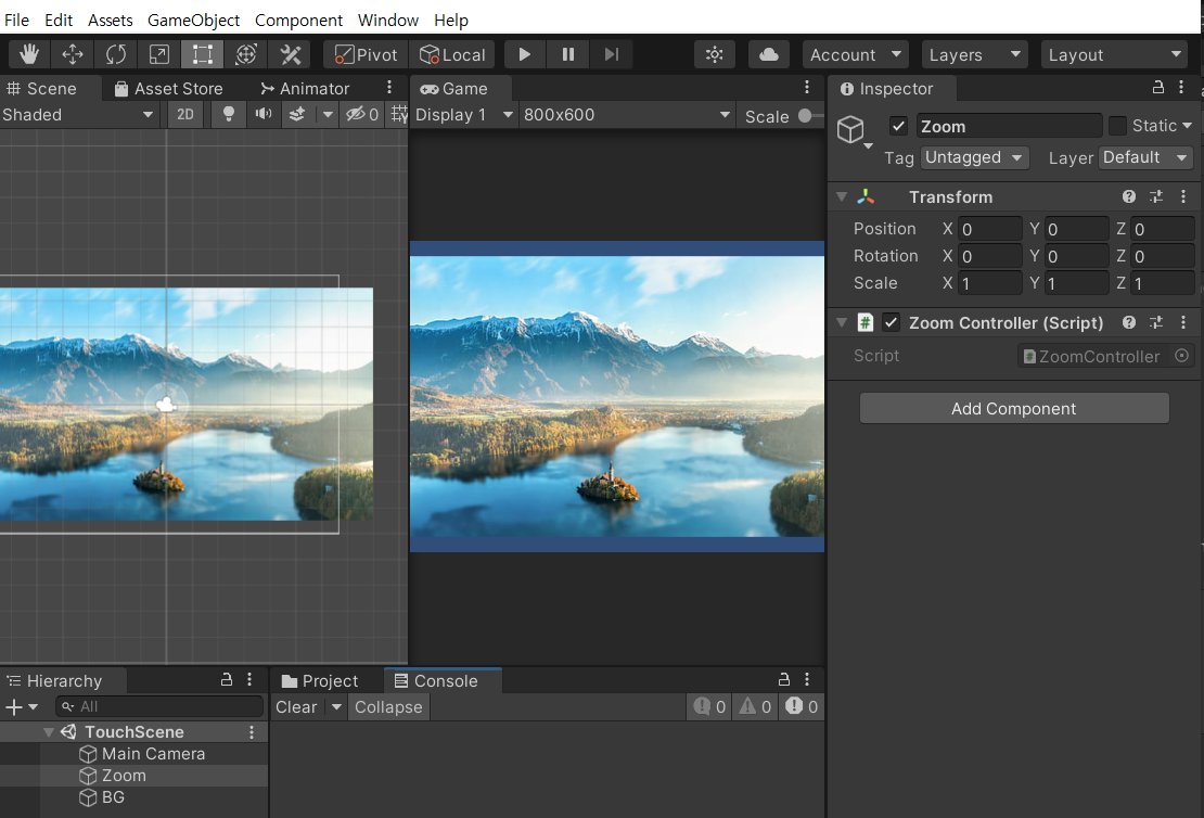 [Unity] 2D 핀치 줌 Pinch Zoom 구현 + 화면 끌기(패닝 Panning) 본문