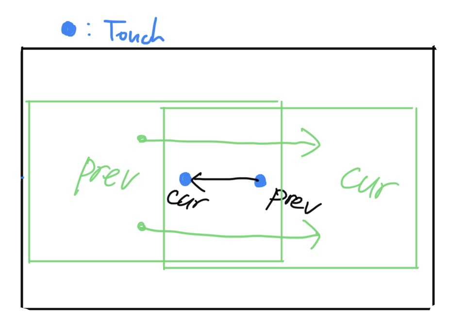 => ex) 이전 프레임 터치 위치 (0,3) / 이번 프레임 터치 위치 (1,4) / deltaPosition (1, 1)
