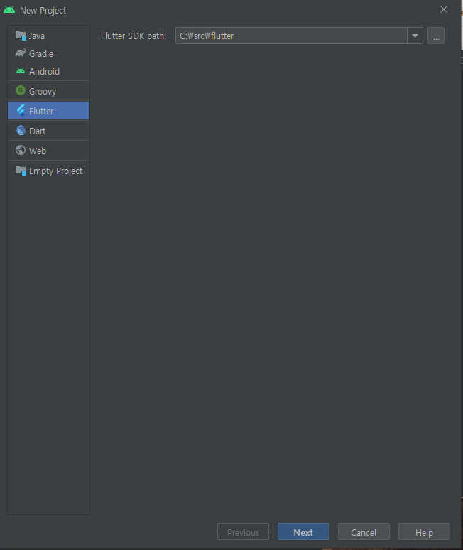 flutter sdk path는 다운받은 Flutter sdk의 위치를 입력해준다.