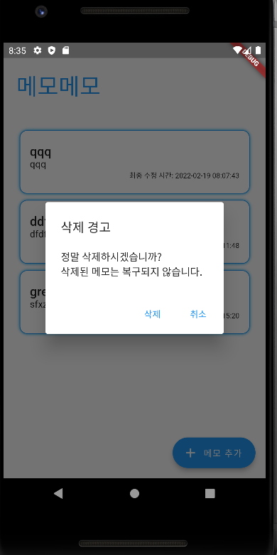 content: Text("정말 삭제하시겠습니까?\n삭제된 메모는 복구되지 않습니다."),