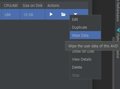 에뮬레이터를 사용하다 데이터를 지워야하겠다면