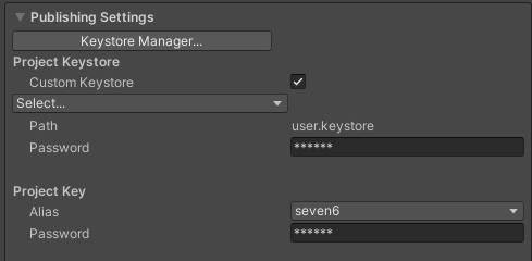 Project Settings -> Player -> Publishing Settrings 에서 keystore manager 에서 key를 생성해주면 된다.