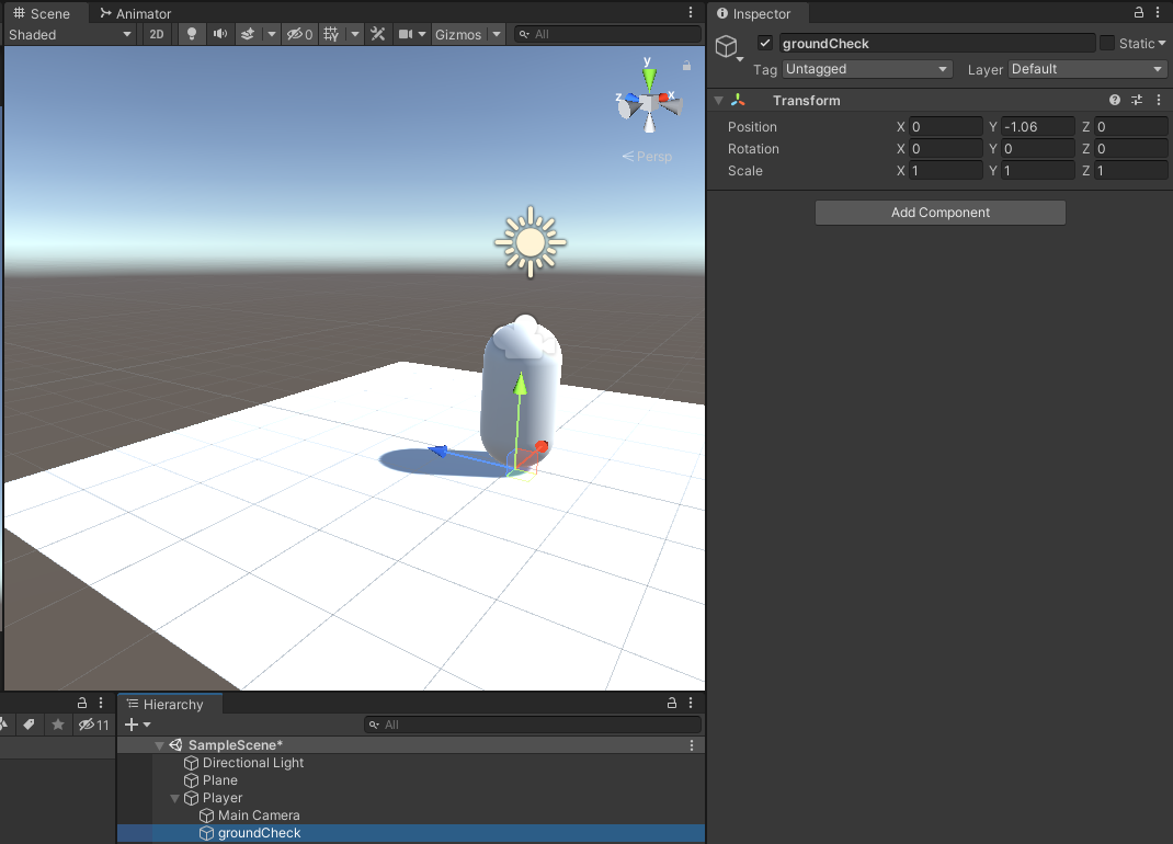 isGrounded = Physics.CheckSphere(groundCheck.position, groundDistance, groundMask);