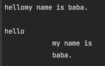 @을 앞에 붙인 문자열은 개행이 되어도 하나의 문자열로 인식된다.