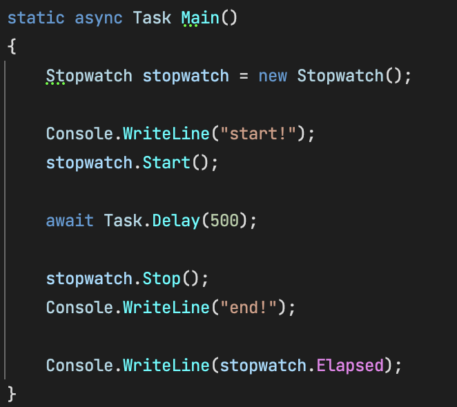 예시에서는 async, await 비동기를 사용해서 인위적으로 0.5초간의 딜레이를 줌으로써 Stopwatch를 실습해보았는데,